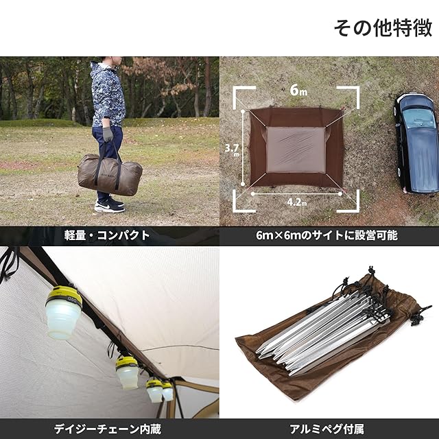 材質:生地:30Dナイロン(シリコンコーティング・PUコーティング)、ポール:アルミ合金、ペグ:アルミ合金