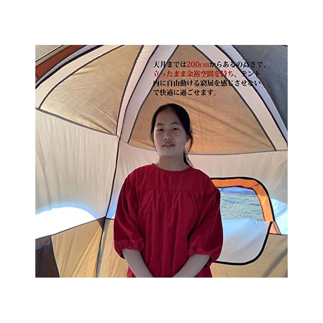 【8-12人用大空間】430*305cm2ルームとリビング装備大空間あり、8-12人収容可能快適な居住空間を楽しめながら、椅子、テーブルなどを並べて余裕なリビングスペースも確保できます。200cmまでの天井の高さあり、テント内に窮屈なしゆったり動き回します。