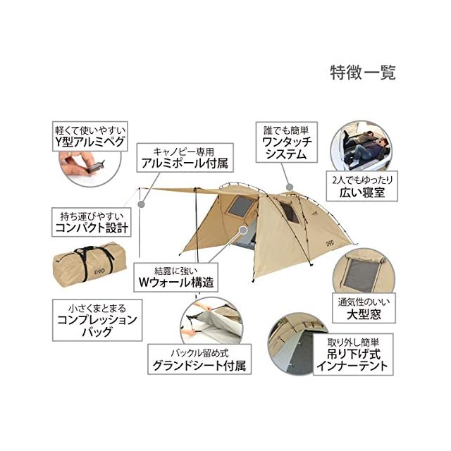 DOD(ディーオーディー) ライダーズタンデムテント 2-3人用 広い 前室 ツーリング フェス ワンタッチテント グランドシート標準付属 T3-485-TN
