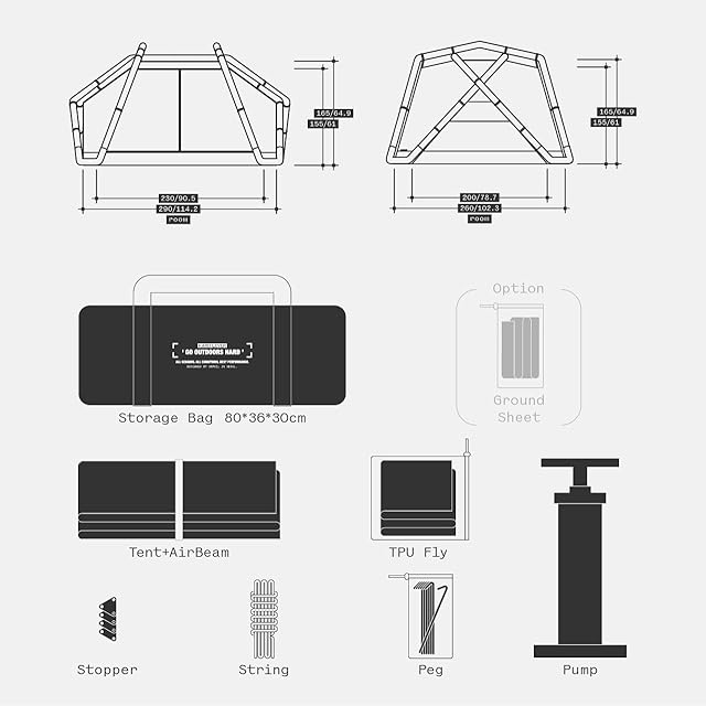 CAMVIL(ケムビル)カニ4Pエアーテント エアーテント インナー ドームテント 4人用 4シーズン 自立式 簡単設営 T/C生地 防水 キャンプ アウトドア 屋外 収納バッグ エアポンプ付き ((KHAKI, インナー+フライシート))