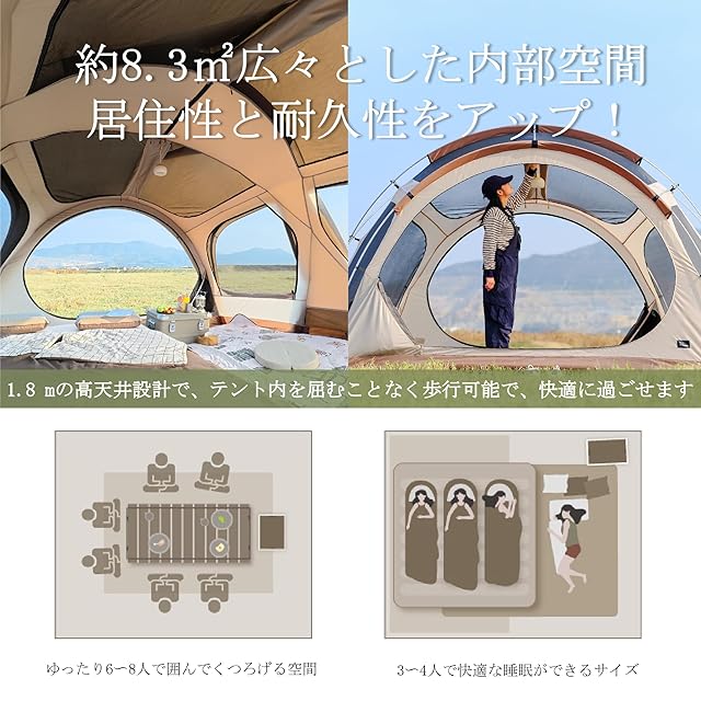 VIDALIDO ドームテント シェルターテント ridge tent拡張寝室テント 4-6人用 幅350cm リビングルーム 4シーズン 防水防風 アルミ製ポール 耐水圧4000mm ファミリー 自立式 キャンプ アウトドア