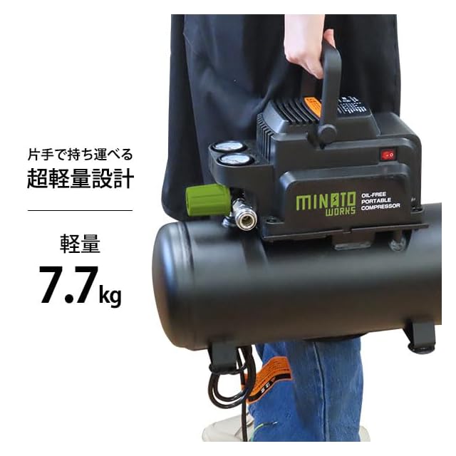 商品名:ミナトワークス オイルレス 型 エアーコンプレッサー CP-8A+エアーツール3点付き (100V / タンク 容量 8L)