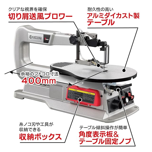 商品名:京セラ(Kyocera) 旧リョービ 卓上糸ノコ盤 TFE-450 676701A 【錆や歪みのない耐久性のあるアルミダイカスト製テーブルを採用】 切断能力 (木材)50mm 直線・曲線切り クイックブレードチェンジ機構