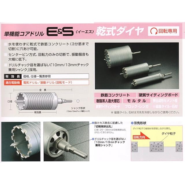 ●水を使わずに乾式で鉄筋コンクリート(3分筋まで切断)に穴あけ可能です。●センターピン方式、回転力のみの切断で、振動騒音も大幅に低下します。