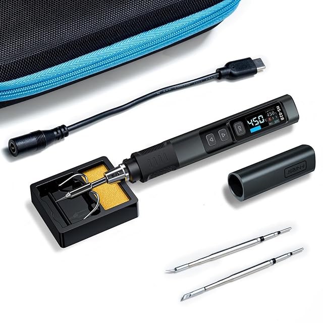 商品名:FNIRSI HS-02B ハンダゴテ 内熱式 ポータブルはんだこてキット 100W急速加熱 こて先付き 電子作業 USB給電 デジタル IPS表示 温度調節可100℃-450℃ DIY溶接ツール 持運便利 PD/QC/DC対応 半田付け 精密基盤 家電修理 スリーブ機能 キャップ付き