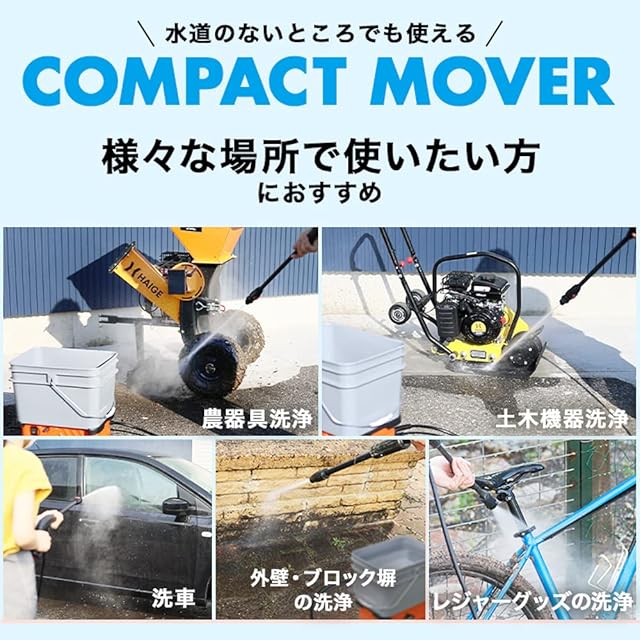 貯水タンク型なので水道のないところでも使用でき、作業現場での機械洗浄、アウトドア、レジャーでの用品洗浄など様々な場所で使いたい方にオススメ!