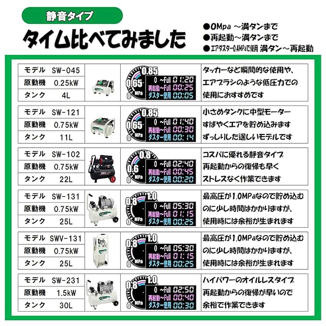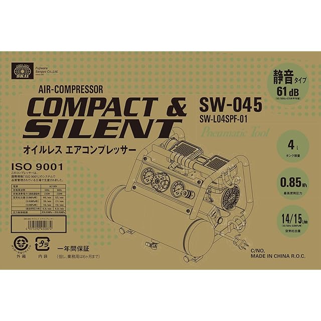 SK11(エスケー11) オイルレス エアーコンプレッサー SW-045 タンク容量 4L 低騒音モデル SW-L04SPF-01