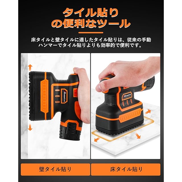 商品名:Mxmoonfree 電気タイル張り機 タイル振動ツール 振動数12,000r/min 6段調整可能 吸盤なし サイズ115*70mm タイルビブラート 密着張り工法に対応
