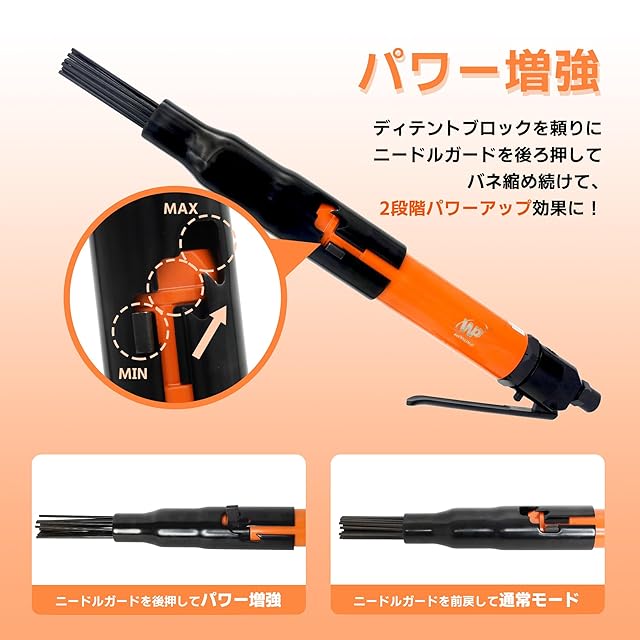 商品名:WP WORKPAD ジェットタガネ ニードルスケーラー プロ向け 針19本付き チゼル付き エアーハンマー兼両用 サビ落とし 塗装落とし はくり タイルはがし WP エアーツール WP01120S