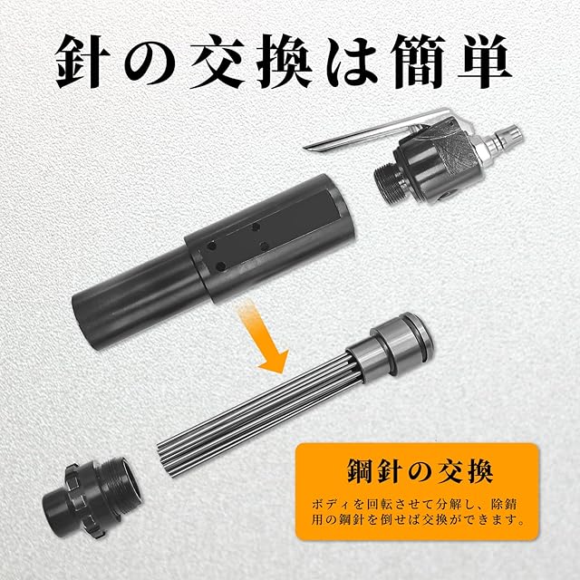 商品名:CXCESNS ジェットタガネ ニードルスケーラー エアハンマー 針式除錆機 エアツール エア工具 錆落とし 塗装落とし 12本付き 錆び取り機 打撃数4000回/分 プロ向け強力型 エアーハンマー兼用 12本針 4000BPM 錆塗装落とし タイルはがし 錆除去 ニードルスラグ