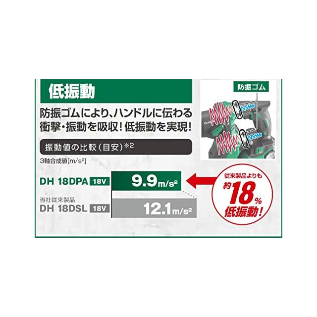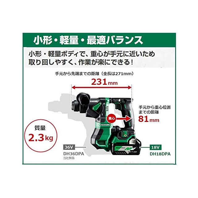 HiKOKI(ハイコーキ) 18V コードレス ハンマドリル ワンハンドタイプ SDSプラスシャンク 最大穴あけ能力コンクリート18mm DH18DPA(2XP) 蓄電池2個・充電器・ケース付き