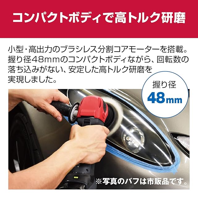 ●パッド寸法・バフ寸法:パッド径75mm・バフ径80mm。