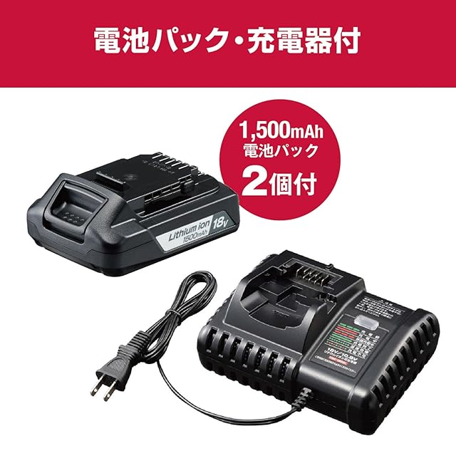 ●駆動方式:シングルアクション。●電源:(電池パック)B-1815LAリチウムイオン電池1500mAh・(電圧)DC18V。