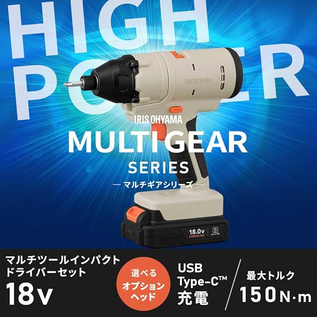 アイリスオーヤマ マルチギア 充電式インパクトドライバーセット 18V JM18INS サンドベージュ