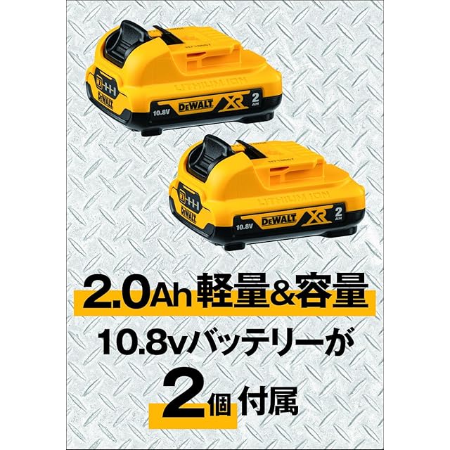 デウォルト(DEWALT) コードレス ドリルドライバー 電動工具 穴あけ 締付工具 【オンライン限定商品】コンパクトシリーズ ブラシレスモーター 10.8V バッテリー2個 充電器 付き