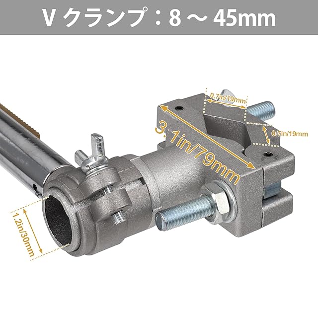 【V型クランプ範囲】Φ8mm~45mm