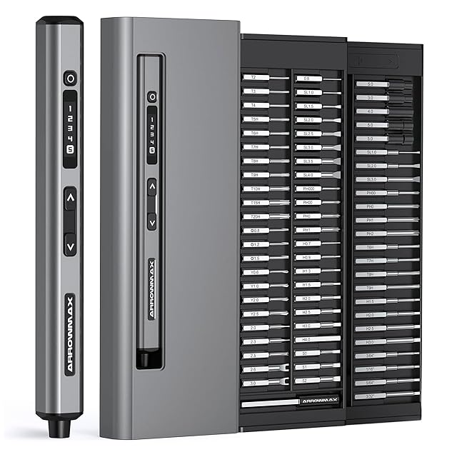 ARROWMAX 電動ドライバー、74 in 1 ミニパワードライバーセット、70 個の磁気ビット付き、5 つのトルク モード、レッド ドット、IF 受賞デザイン、電話や DIY 用の充電式小型コードレス ドライバー (SES ULTRA)