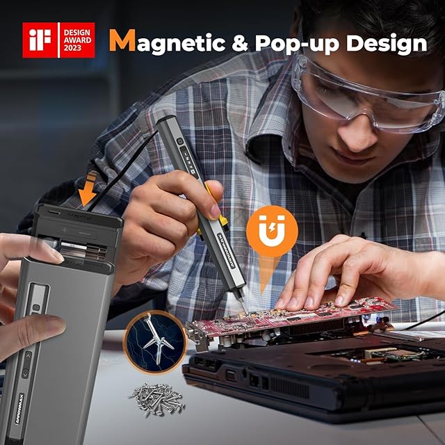 [強力で正確な締め付け] 当社の電動ドライバーセットには、5段階の調整可能なトルク設定と正逆機能があり、電子機器の修理作業のニーズを完全に満たします。手元のあらゆる作業に最適なトルクレベル (0.05~0.4 N.m.、手動: 3 N.m.) を選択してください。低トルク設定を使用すると、繊細な部品を締めすぎから保護し、高トルク設定では確実に締め付けることができます。逆転モードを有効にすると、締め付けと緩めを簡単に切り替えることができます。