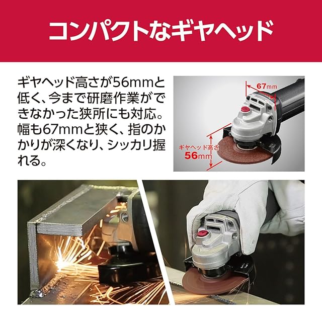 握り径:56mm、砥石径:(外径)100mm×(内径)15mm、定格速度:12000min-1、絶縁方式:二重絶縁