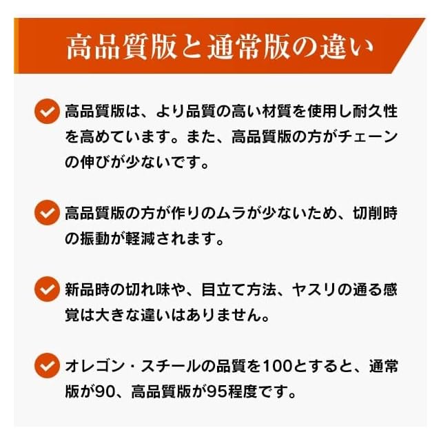 非常に軽く滑らかな切れ味のチェーンです。チェーンの伸びが少なく、優れた耐久性も兼ね備えています。