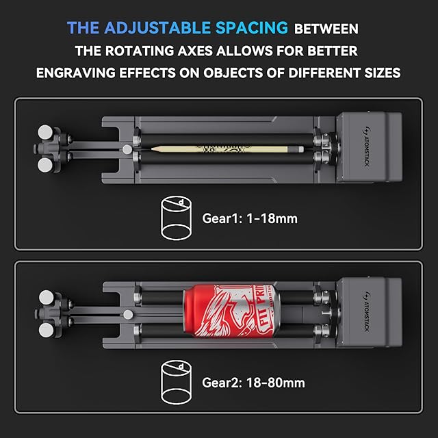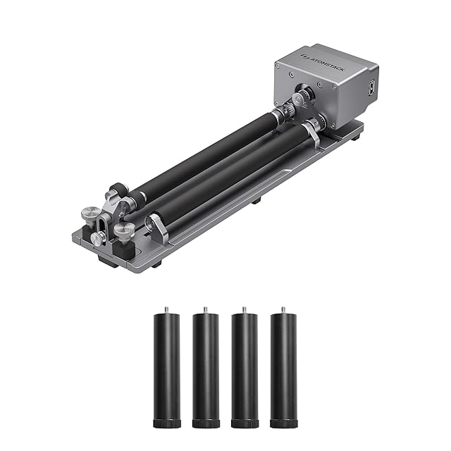 ⭐ 【使用上の注意&100mm高さのフットパッド4個付属】ロータリーローラーを使用する前に、レーザーソフトの設定パラメータを変更してください。パッケージには100mmの高さフットパッドが4個(ATOMSTACK P1 K2 彫刻機対応)付属しており、レーザー彫刻機の高さを上げることでロータリーローラーにぴったりと適合させることができます。