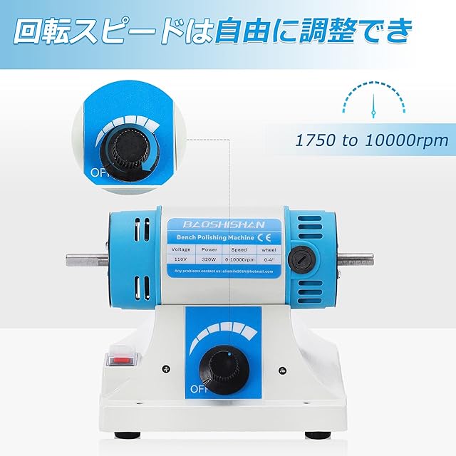 BAOSHISHAN卓上グラインダー ミニ両頭グラインダー 320W軽便グラインダー バフ研磨機 スーパーパワーミニバフ研磨機 バフモーターセット バフベンチグラインダー ポリッシャー 110V (青い卓上グラインダー +研磨アクセサリー)