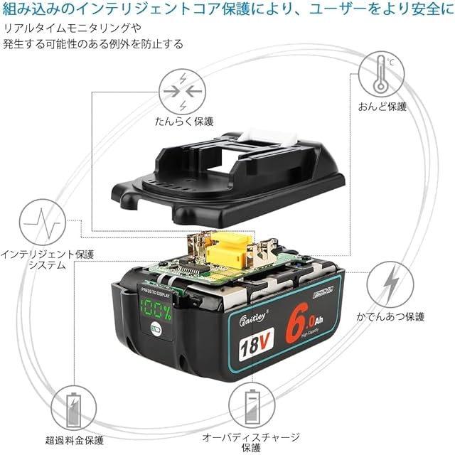 ★アップグレードバッテリー保護ボードは各セル監視システム搭載されて、万が一セルは支障が発生した際に直ちに電流を遮断されますので、より安全にご利用頂けるよう改良されました。 短絡保護、過電流、過充電、、過放電、過電圧および過熱などの安全保護回路も搭載されていますので、より低不良率が実現できます。