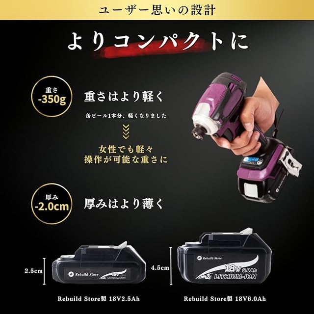 Rebuild Store (リビルド ストア) マキタ 18vバッテリー 薄型 1830 互換バッテリー マキタ18V 2.5Ah 2個セット