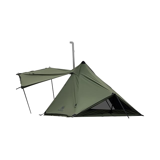 OneTigris CONIFER テント ソロテント 軍幕テント ポリコットンT/C 二股ポール 二又フレーム 煙突穴付き 焚火可 撥水 通気 遮光 簡単設営 1-2人用 キャンプ用 アウトドア (アーミーグリーン)
