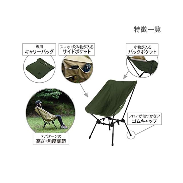 DOD(ディーオーディー) スゴイッス 高さ調整 4段階 焚き火 スタイルから ハイスタイル まで コットン素材 で 火の粉 に 強い チェア カーキ