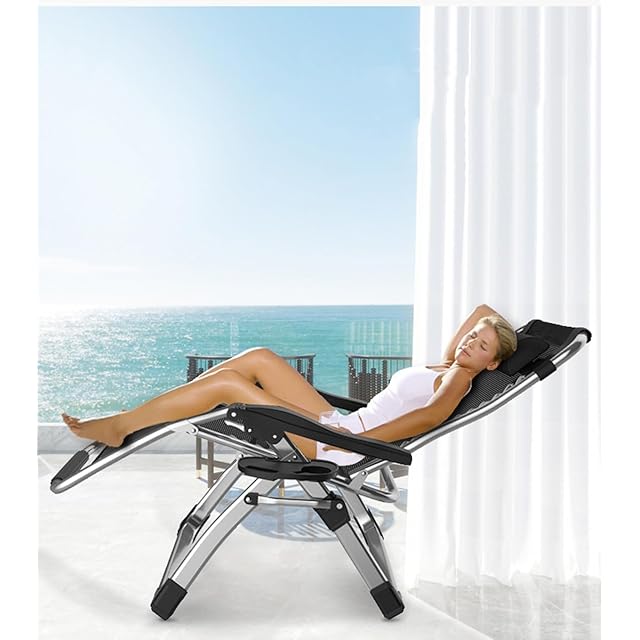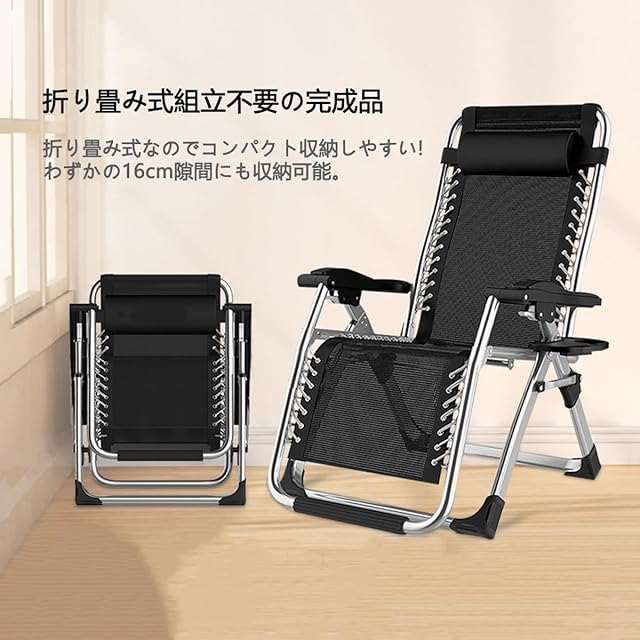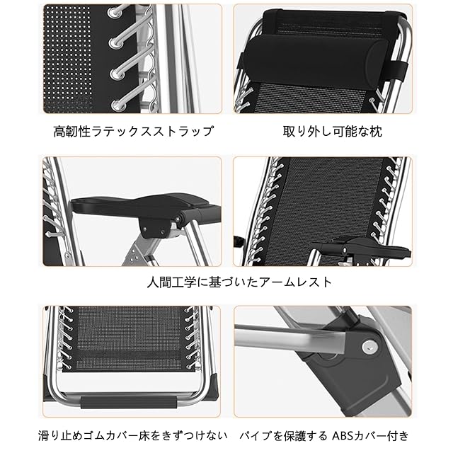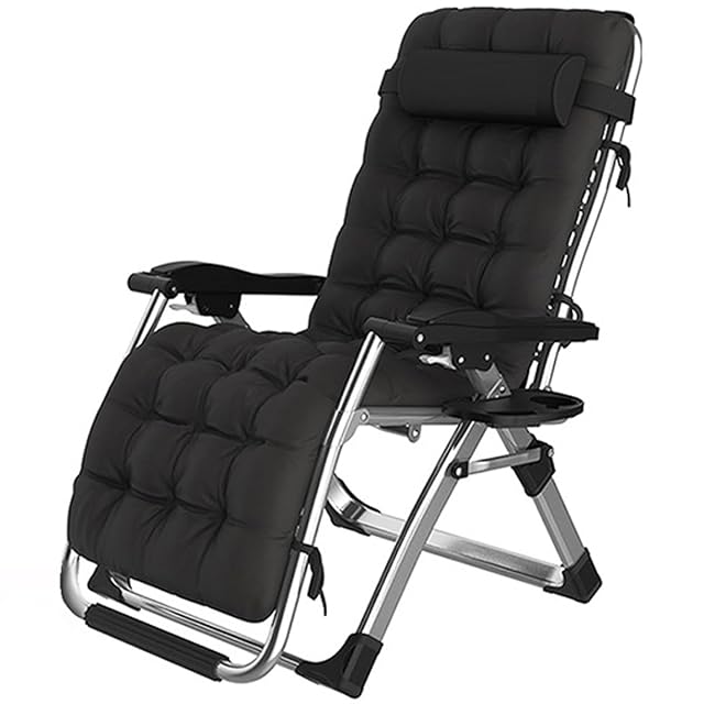 リクライニングチェア コールマン チェア インフィニティチェア ベランダ 椅子 アウトドアチェア 折りたたみ椅子 キャンプインフィニティチェア 無段階 角度調節 枕つき 耐荷重160kg 組立不要 仮眠 昼休み 昼寝(パールコットンパッド-ブラック)