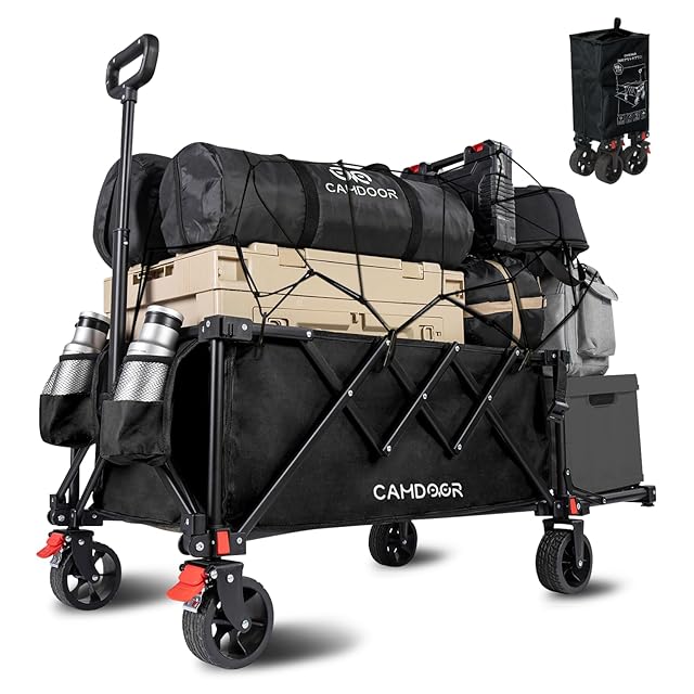 CAMDOOR 後ろ開け キャリーワゴン 長物対応【3秒で収納·大容量·超軽量】アウトドアワゴン 軽量 静音 キャンプカート 大容量240L 耐荷重120kg コンパクト自立収納 キャリーカート BBQ 釣り 運動会 荷物運び 引っ越し ワンタッチ収束式