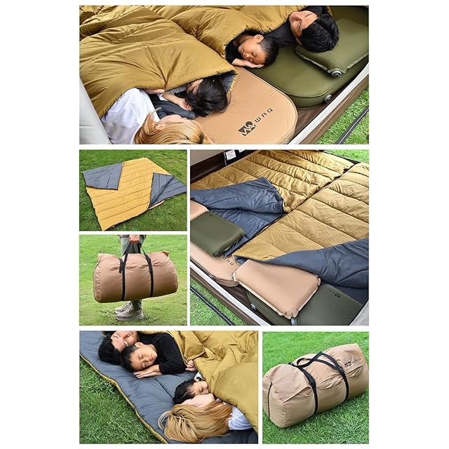 WAQ DD SLEEPINGBAG ファミリー 寝袋 ソロ キャンプ アウトドア 両開きタイプ 3シーズン 春用 夏用 秋用 快適使用温度0℃ 洗い可能 収納袋付き (ファミリータイプ)