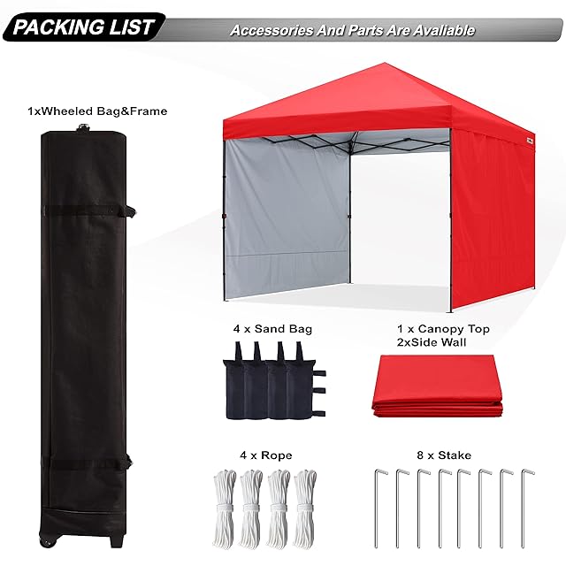 ABCCANOPY ワンタッチテント タープ テント 3mx3m 2.5mx2.5m 簡易テント 大型 サイドシート2枚 センターロック 三段階調節 耐水 UVカット 日除け 遮熱 紫外線カット 耐風性 組立簡単 キャスターバッグ付き (3M/レッド)
