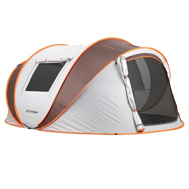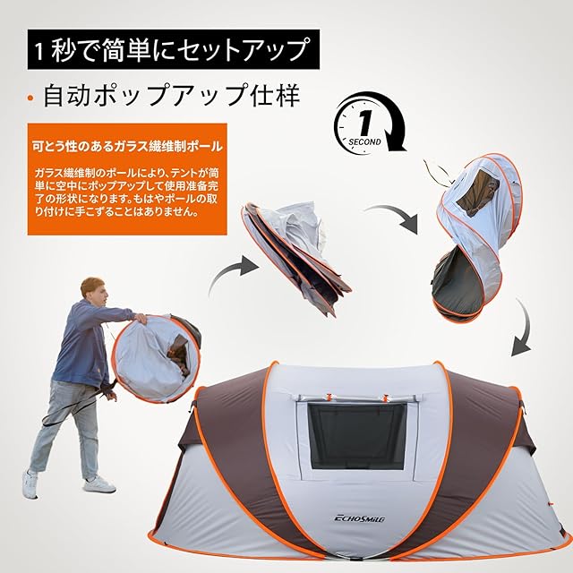 EchoSmile ポップアップテント 6人用 1秒簡単組立 ワンタッチ 防水耐水圧3000mm 防UV+防蚊ネット付き キャンプ用 家族用テント 軽量設計 (2/4/6/8人用選択可)