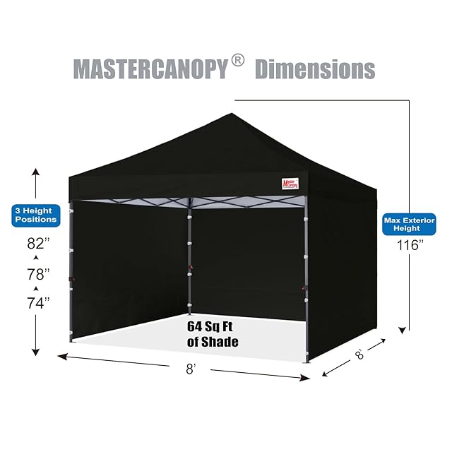 マスターキャノピー(MASTERCANOPY)ワンタッチタープテント 横幕/サイドシート四枚セット スチールフレーム 組立簡単 商用 アウトドア用(キャスターバッグ ペグ ロープ ウェイトバッグ付き)(2.5M,ブラック)
