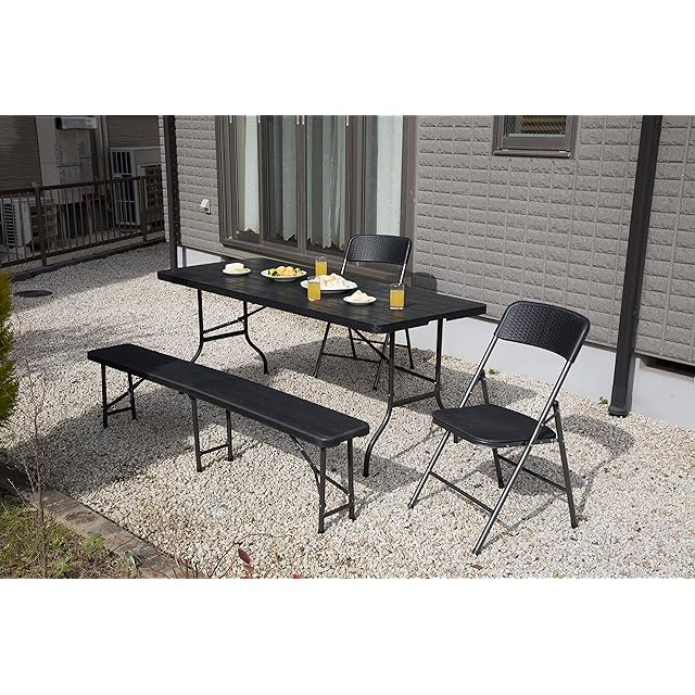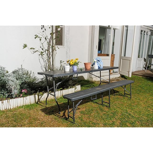 リビングアウト(Living Out) 木目調折りたたみガーデンテーブル ダークブラウン 幅181x奥行75.5x高さ73cm 幅180cm テラス ガーデン アウトドア 大人数 庭 おしゃれ 軽量 木目調天板 金属フレーム 安全ストッパー付 コンパクト収納