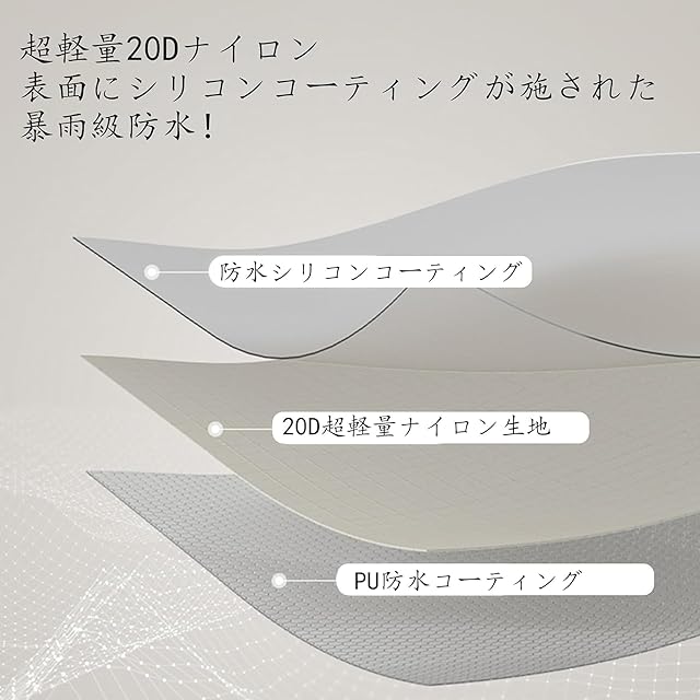 【アップグレードした生地】この二人用テントは20Dナイロン生地を採用しており、表面にシリコンコーティングとPU防水層を施され、防水PU3000+に達し、暴雨でも簡単対応できます。インナーテントはB3ポリエステル繊維メッシュを採用し、防虫ができて通気性が備えています!さらに、環境を守るために、Naturehikeはエコな新型アルミポールをCloud up proテントに装備させました!このポールは硝酸やリン酸がなく、自然に負担を齎せません。また、このアルミポール8.5mmの直径があり、高靭性がある同時に、普通のテントよりもっと安定しています!★グランドシートが付属し、210Tポリエステル生地で、防水PU5000+に達しました!さまざまな天候で対応できます!