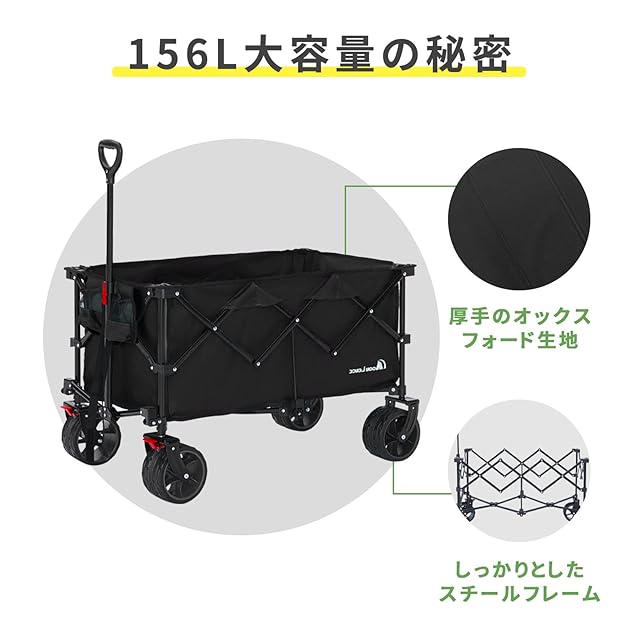 ❁重い荷物も1度で運べる大容量----このキャリーワゴンはしっかりとしたスチールフレームに加え、100kgの耐荷重が実現できます。156L大容量でたくさんの荷物も1度で運ぶことができます。