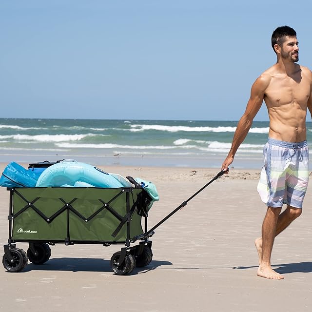 ✿あらゆるシーンで大活躍できる----ファミリーキャンプでキャンプ用品の搬送・運動会でスポーツ用具の搬送などいろいろ使えます。幅広い大型タイヤを採用、芝生や草の上はもちろん、ビーチでも砂に埋まりません。河原・砂利道などの悪路でもグングン荷物を運ぶことができます。