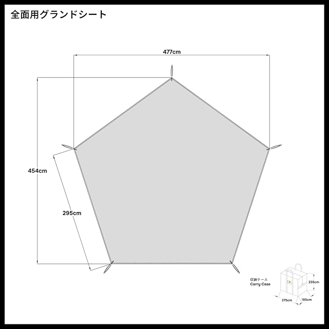 【全面用グランドシート】インナーテント用と前室部分を覆える特殊形状となっており、荷物を置きとしても便利な形状です。
