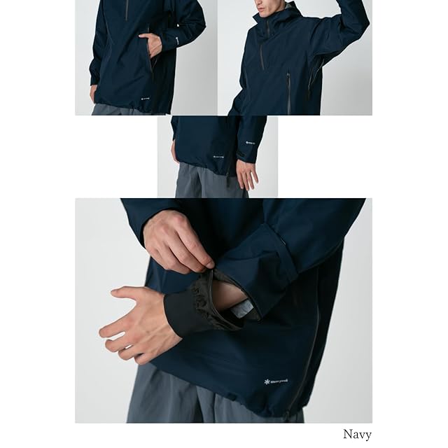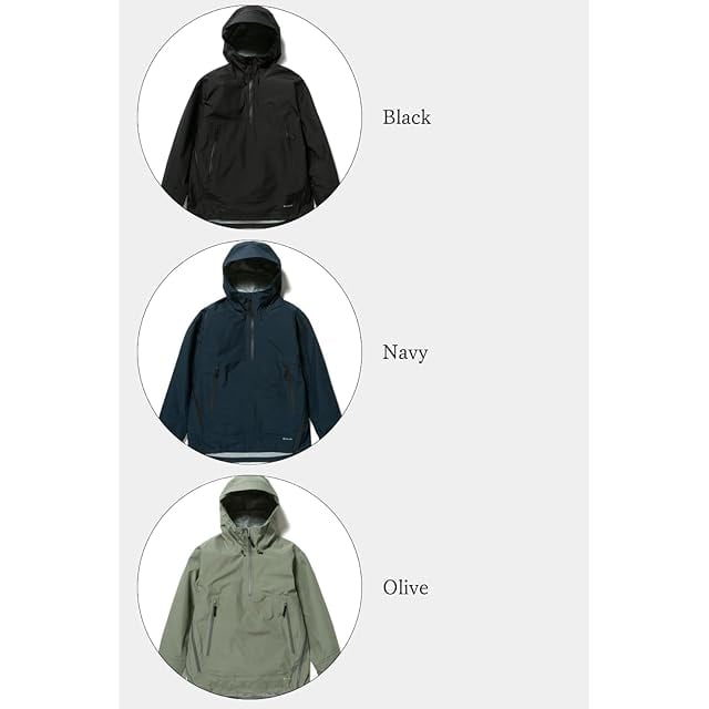カラーは、ブラック、ネイビー、オリーブの3色展開で、幅広いアイテムをラインナップ。いずれもユニセックスで取り入れられる豊富なサイズをそろえています。 シンプルなデザインに使いやすいディテールを完備。天候の変わりやすい時期のキャンプ必携アウター。後ろ裾が長く、ヒップまでカバーのできるフード付きプルオーバーです。完全防水のフルシーム加工となります。脇には止水ファスナーのベンチレーションを配置して、衣服内の温度調整が手軽に行えるようにしました。袖上げのしやすさや、使いやすいポケットの位置など随所に工夫が見られ、計算されたつくりは圧巻です。袖口は面テープで、フード口と裾はスピンドルコードで調節ができます。