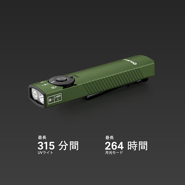 OLIGHT(オーライト) Arkfeld Pro EDCフラッシュライト 1300ルーメン 充電式 IPX7防水 検知機能 防災対応 プロ点検 アウトドア用 超軽量 コンパクト (グリーン)