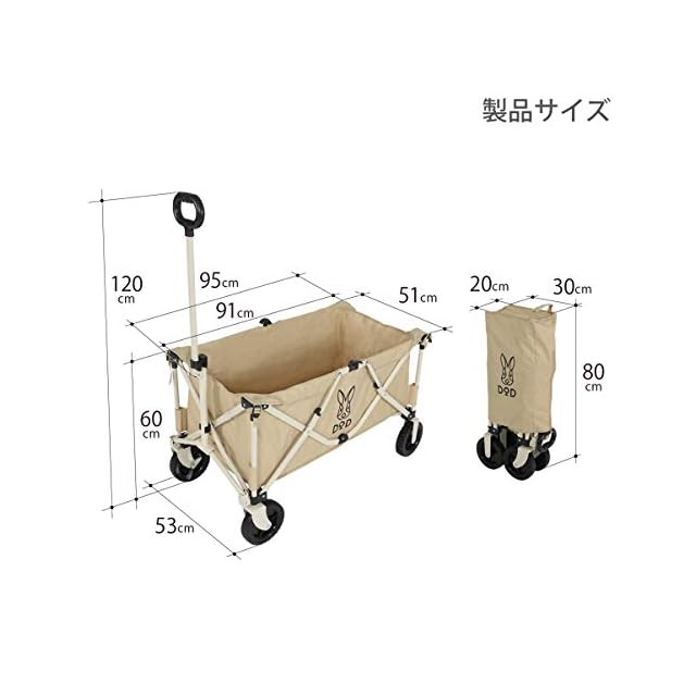 DOD(ディーオーディー) キャンプ道具 をまとめて運べる キャリーワゴン ベージュ【最大積載重量100kg/容量125L】 C2-46T