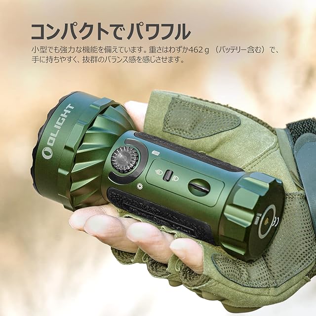 OLIGHT(オーライト) Marauder Mini 懐中電灯 ledフラッシュライト 強力 最強 ハンディライト 7000ルーメン 射程600M 43.5Hランタイム 充電式 防災 小型 停電対策 緊急用 登山 捜索救助 ワークライト 高輝度 IPX8防水 (グリーン)