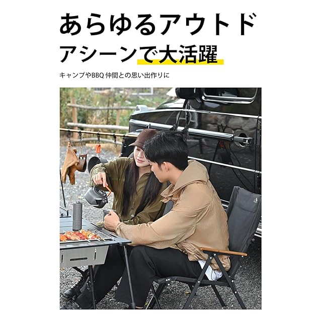 上質な使い心地: 天然ビーチウッドの肘掛けが高級感を演出しながら、サイドポケットにはスマートフォンやドリンクを収納可能。細部までこだわった使いやすさで、快適なアウトドアタイムをサポートします。