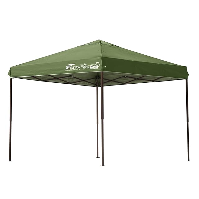 FIELDOOR ワンタッチタープテント 組立て簡単 高耐水加工 シルバーコーティング(※ホワイトを除く) UVカットコーティング アウトドア キャンプ BBQ [通常タイプ] [2.5m] [カーキ/ブラウンフレーム]