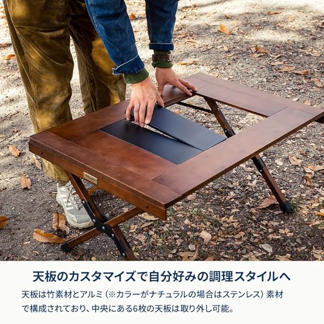 ✅【自分好みの調理テーブルにカスタマイズ】 中央の取り外し可能な天板は竹素材とアルミ素材(※カラーがナチュラルの場合はステンレス素材) 順番を自由に変更することができるので、自分好みのスタイルにカスタマイズが可能です。