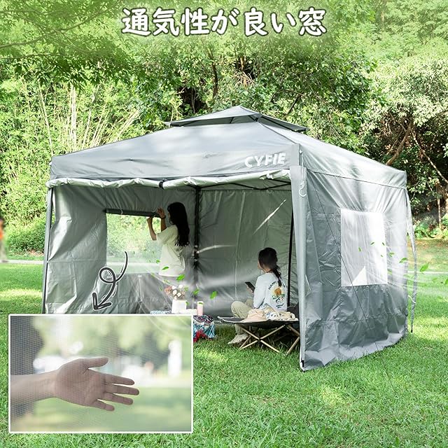 CYFIE タープテント ワンタッチ 3mx3m サイドシート 1枚付き ワンタッチ UVカット 耐水 スチール製 キャンプ ワンタッチテント 遮光 アウトドア用 遮熱 組み立て簡単 イベントテント 運動会 業務用 (カーキ, 3mx3m サイドシート4枚付き)